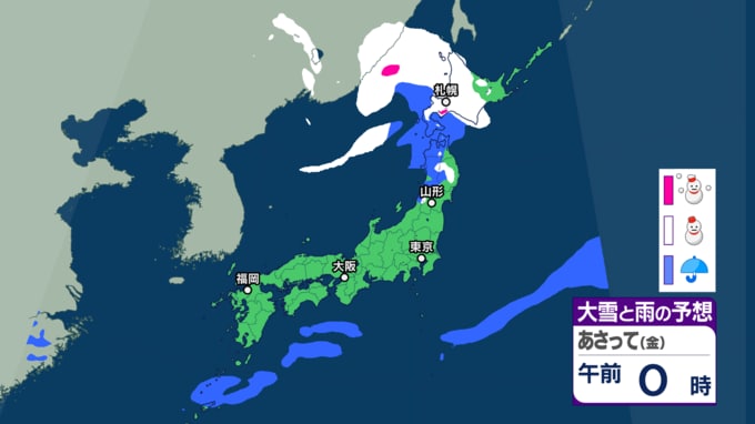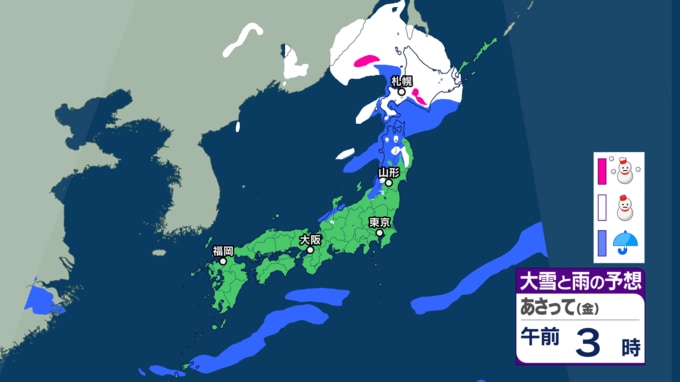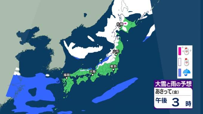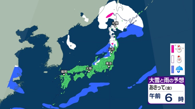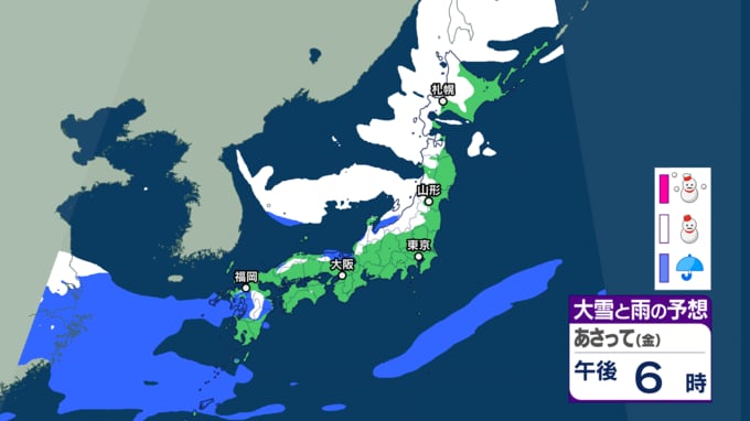 【大雪・天気】衆議院選挙の投開票日は広範囲で雪か...日本海側では警報級の大雪も 寒波直撃で関東でも雪の可能性 【6日~8日の降雪シミュレーション】 テレビユー山形 2026年2月4日(水) 15:00 国内 ■雪と雨のシミュレーション(6日)