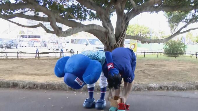 ドアラの逆襲!? ドラゴンズ “ドラ1ルーキー”中西聖輝投手 沖縄での“人生初の豆まき”で豆がドアラに「ばちーん!」と当たり…