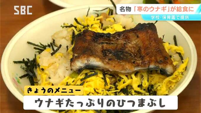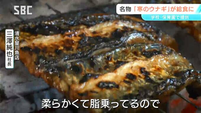 岡谷の寒い冬を、元気に乗り切ってもらおうと子どもたちに地元の名物「ウナギ」が振る舞われました。