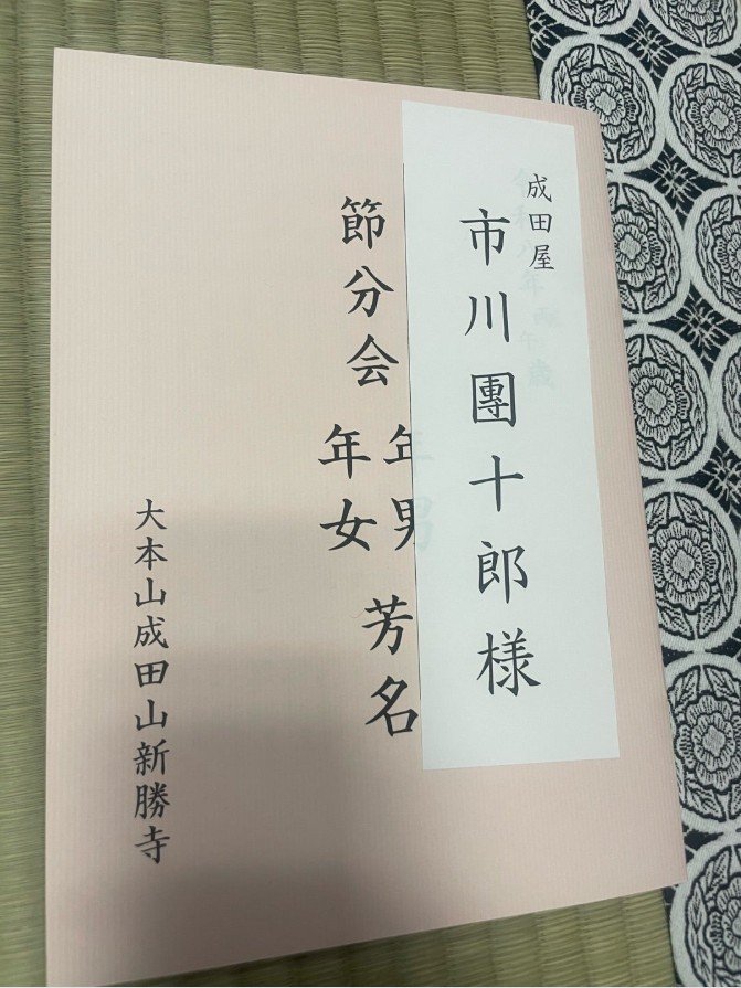 朝からトレーニングをして体調を整えた團十郎さんは、午前中に成田山に到着。「つきました」と短い言葉とともに、成田山から受け取った節分会の案内状の写真を公開しました。