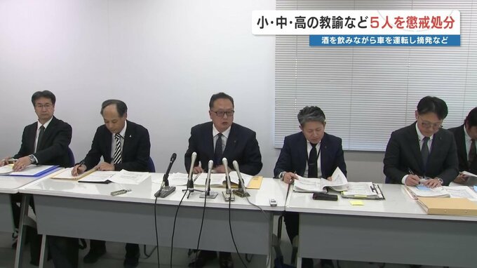 熊本県教育委員会は、酒を飲みながら車を運転し摘発された中学校の教諭を免職にするなど、5人を懲戒処分しました。