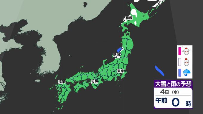 雪シミュレーション4日(水)~8日(日)8日は東京都心で「雪」予想