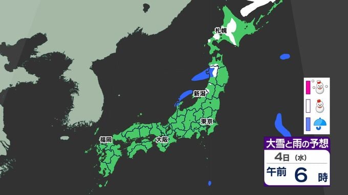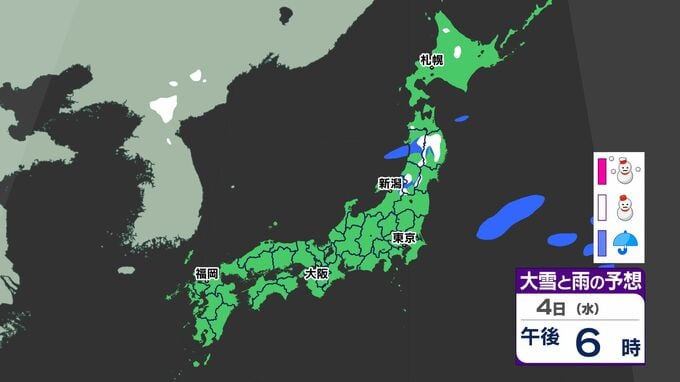 6日(金)には寒気が強まるため、北日本から「雪」が降り出すでしょう。