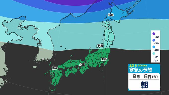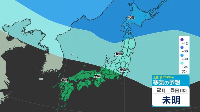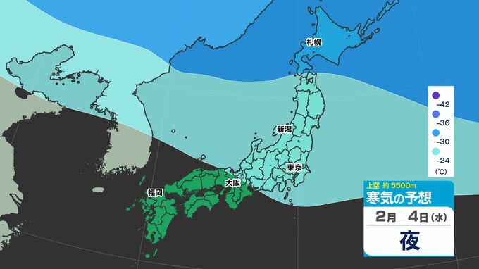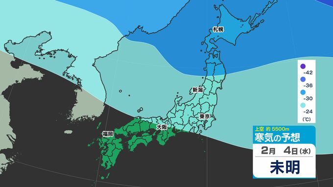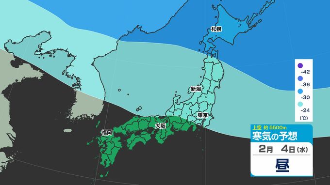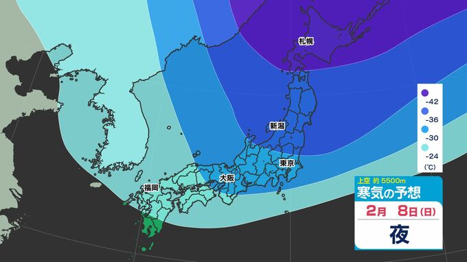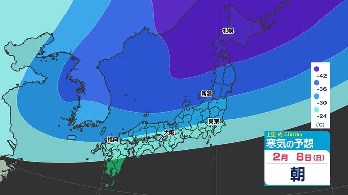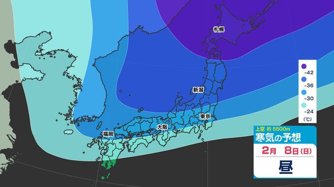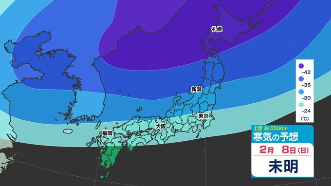 【大雪の投票日か?】東日本から西日本で「警報級の大雪おそれ」【雪シミュレーション4日(水)~8(日)】衆議院選挙・投票日の天気は?【雪予報 と 全国各都市の週間天気予報】 南日本放送 2026年2月3日(火) 19:00 国内 天気 寒気シミュレーション4日(水)~8日(日) 上空約5500mで「氷点下42℃以下」の寒気が北海道・東北地方へ、「氷点下36℃以下」の寒気が、関東地方に南下してくる見込みです。 この記事をはじめから → 【投票日は大雪のおそれ】雪シミュレーション