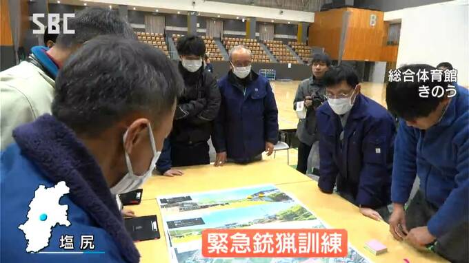 塩尻市で2日、初めて行われた県のクマ緊急銃猟の訓練。住宅地にクマが出没したことを想定し、模擬銃を使い、クマに向けて発砲する訓練を行いました。