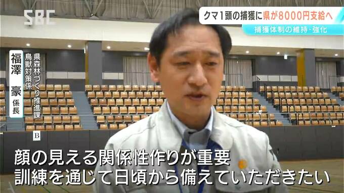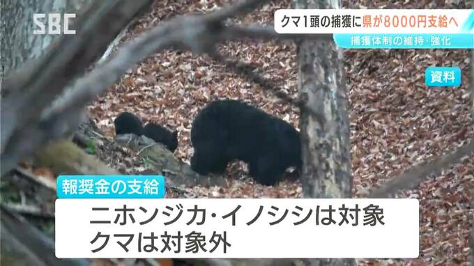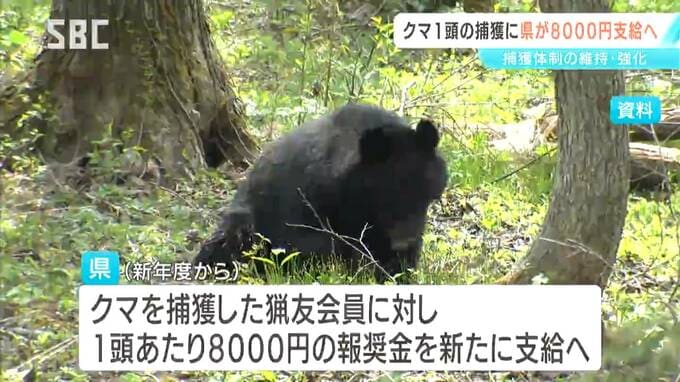 また、県は捕獲体制の維持・強化を目的に、新年度からクマを捕獲した猟友会員に対し、1頭あたり8000円の報奨金を新たに支給する方針を固めました。