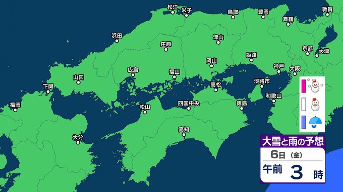 【中国・四国地方の雪 どうなる?】広島・岡山・山口・鳥取・島根・香川・愛媛・高知・徳島 2月3日(火)~8日(日)雪雨シミュレーション【気象庁 3日現在】 RSK山陽放送 2026年2月3日(火) 18:05 国内 6日(金) 3日(火)~8日(日)にかけて中国・四国地方の雪雨シミュレーション画像