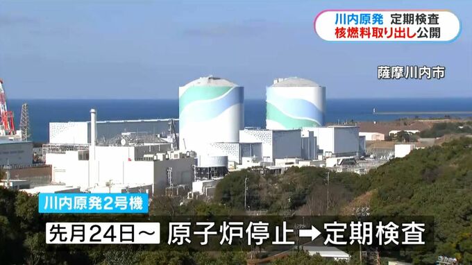 川内原発2号機は先月24日から1年1か月ごとに義務付けられた定期検査に入っています。2号機の定期検査は、去年11月に、運転期間が40年を超えてから初めてで九州電力は3日、2号機の核燃料取り出し作業を報道陣に公開しました。