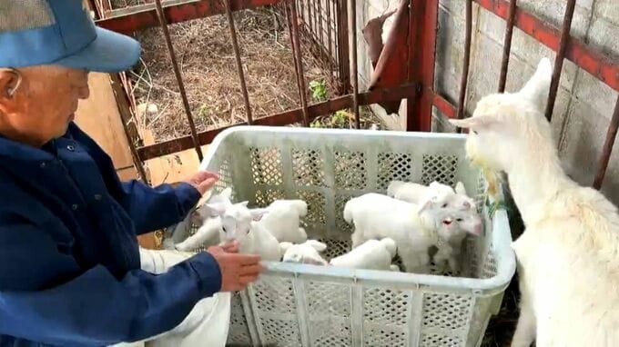 ヤギの出産は一般的に1度に2匹ほどですが、牧本敬次郎さんが飼っている4歳のヤギは、オス3匹、メス2匹の合わせて5匹を出産しました。