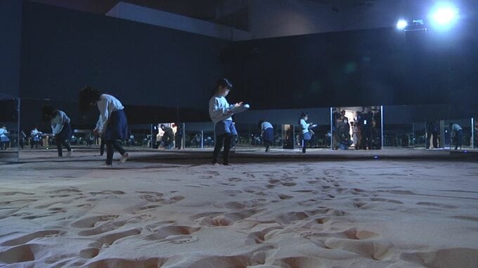 こちらは3階の展示エリア、ヨルダン館で展示されたワディ・ラムの赤い砂が敷き詰められその上を虫メガネ型デバイスを使って探索するというまさに万博で展示された「鳥取無限砂丘」と同様の体験ができます。