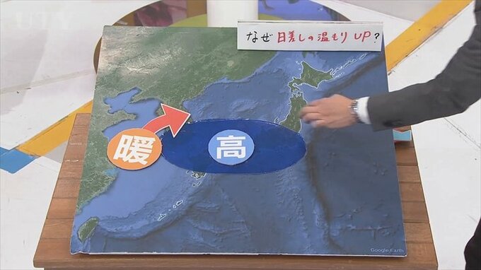 ただあすになりますと、この高気圧が次第に東へと移動していきます。そうなると今度は高気圧に覆われますから時計回りに風が吹くと今度は南ないしは西の方から暖かい空気がどんどん入ってくる。