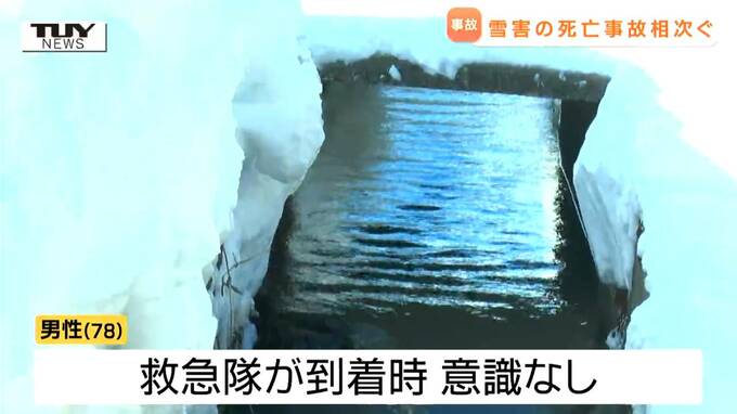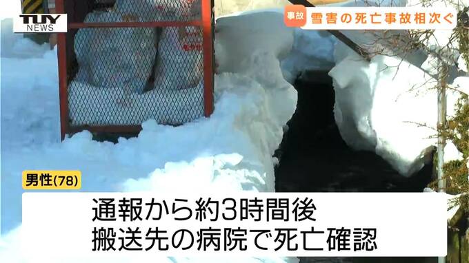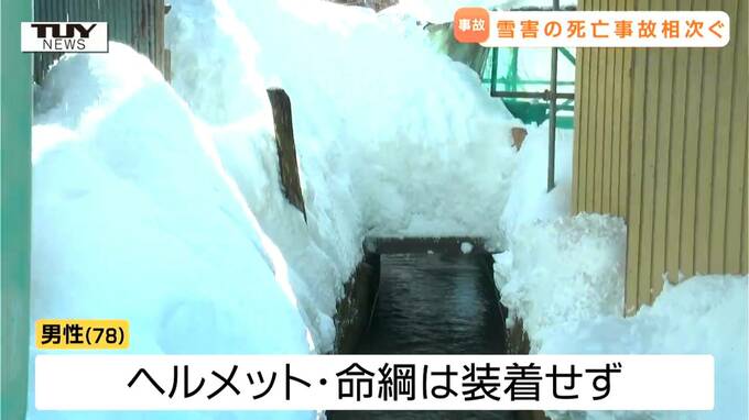 山形県鶴岡市ではきょう午前、屋根の雪下ろしをしていた男性が転落して死亡したほか、最上町ではきのう、除雪をしていた女性が水路に落ちているのが見つかり、その後死亡が確認されました。