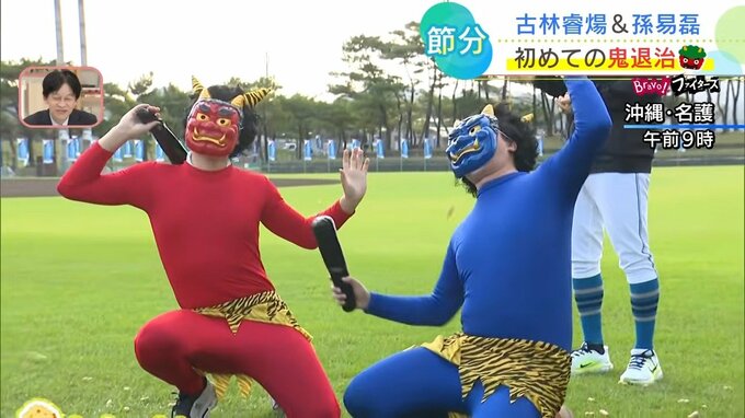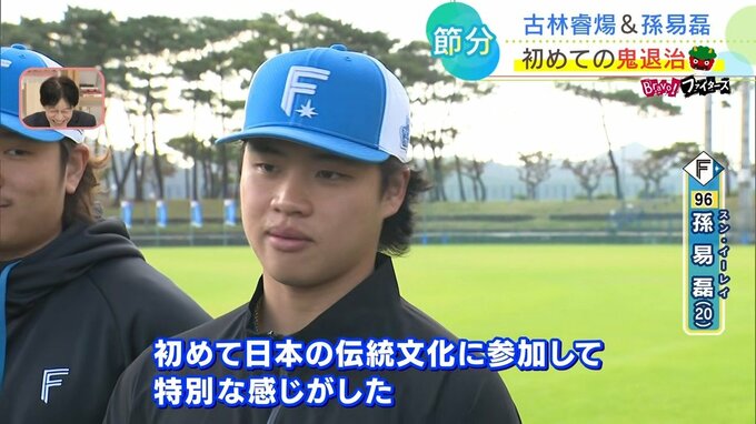 2月3日、節分の日。ファイターズのキャンプ地に現れた「鬼」を退治したのは、台湾出身の古林睿煬(グーリン・ルェヤン)投手と孫易磊(スン・イーレイ)投手です。