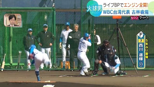 WBC、台湾代表に選ばれている古林。大会公式球で5年ぶり復帰した西川を相手に押し込むと、その後もテーマの1つとしていた持ち味のストレートを軸に20球投げてヒット性の当たりはゼロでした。