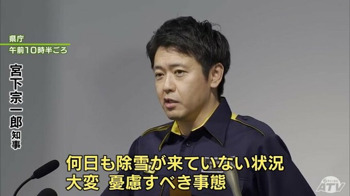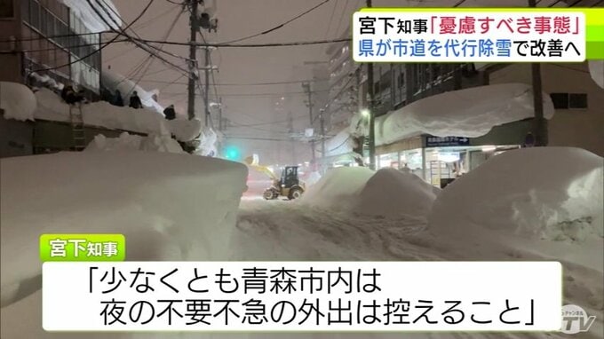 「大変憂慮すべき事態」青森県・宮下宗一郎 知事 県が青森市の管理する道路の除雪を代わりに行う“代行除雪”について準備ができていることを明らかに 青森市の支援を集中的に行うとして県職員の派遣も 青森テレビ 2026年2月3日(火) 21:22 国内