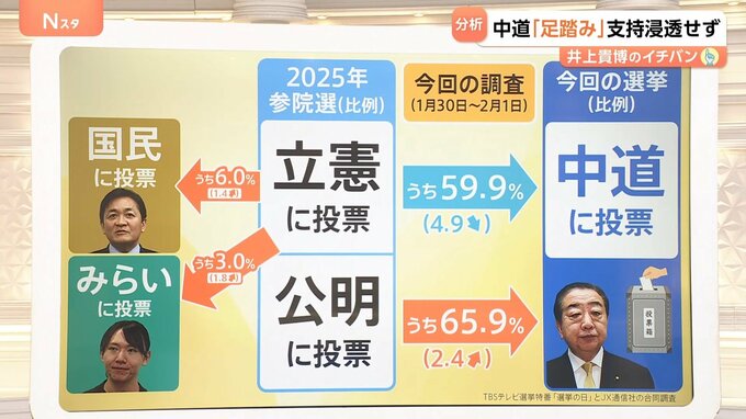 ひとえに、中道という新しい政党の認知・浸透が遅れていることもありますし、また立憲をもともと支持していた人たちが、中道としての政策の変化などで、支持する理由、投票する理由を少し見失っている人もいるのではないかと思います。