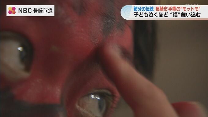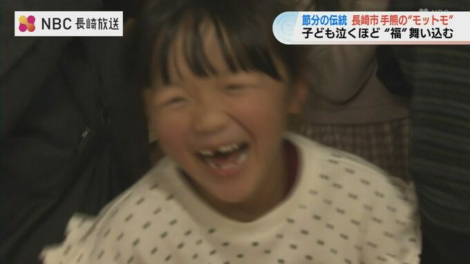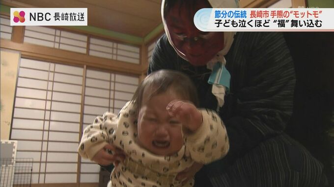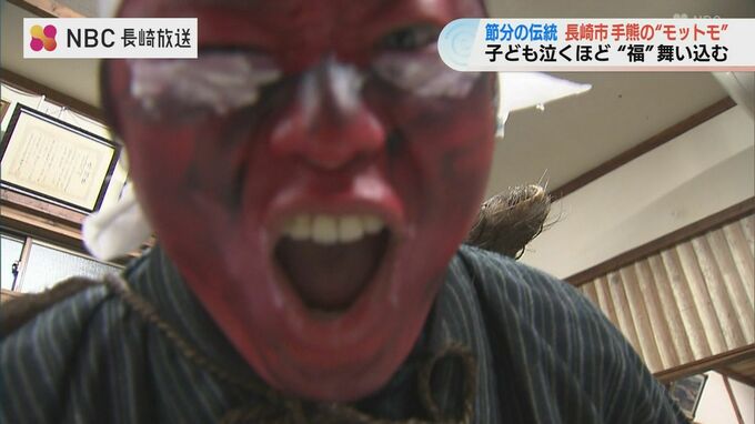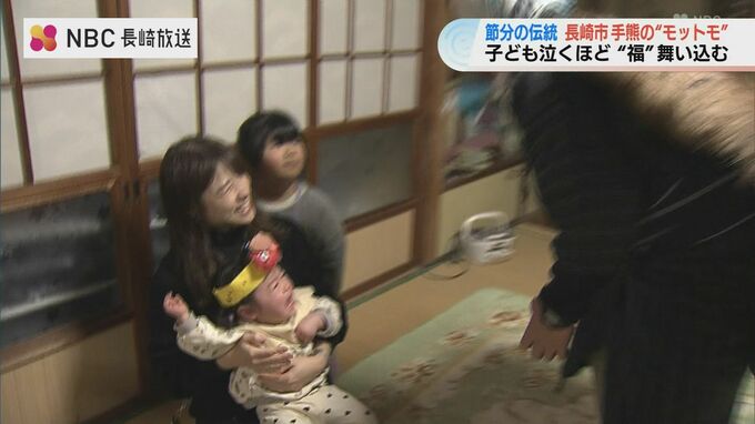 子どもが泣くほど福が舞い込む――。長崎市手熊地区に伝わるユニークな節分行事「モットモ」が2日夜に行われました。