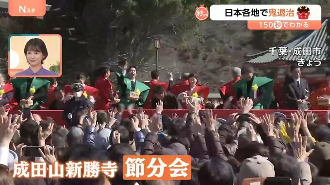 2月3日は「節分」。千葉県の成田山新勝寺では、五穀豊穣などを願い、毎年恒例の豆まきが行われました。