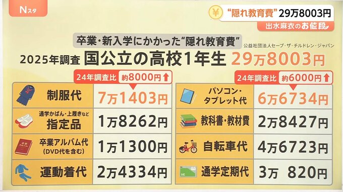 そして制服代は、2024年の調査に比べて約8000円も上がっているということです。