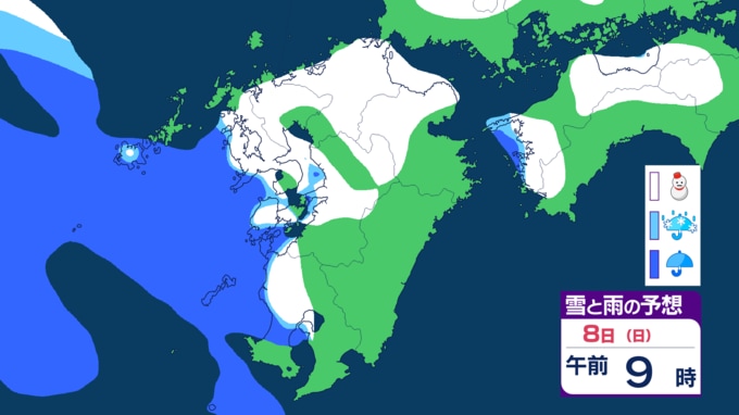 8日(日)頃は、九州北部や日本海側を中心に雪が降る見込みです。気象庁はで「東⽇本から⻄⽇本にかけての⽇本海側を中⼼に⼤雪となり、寒気の程度によっては警報級の⼤雪となるおそれがある」としています。