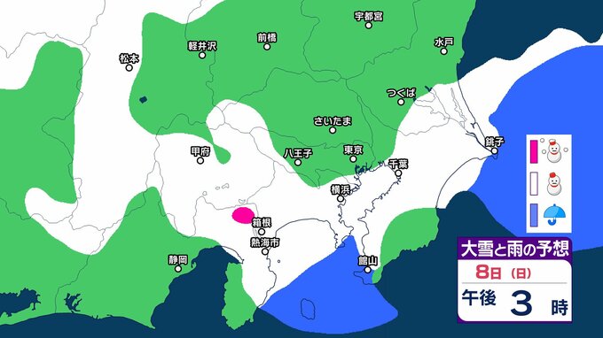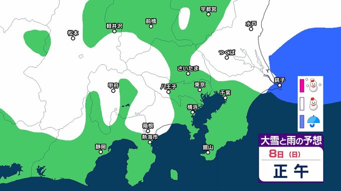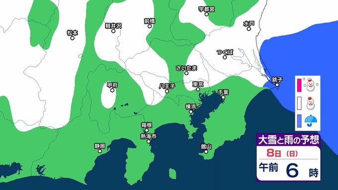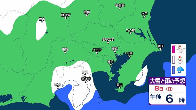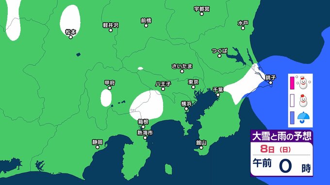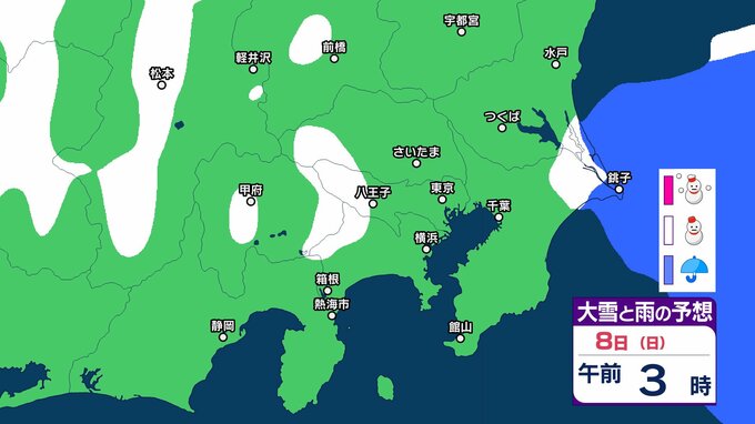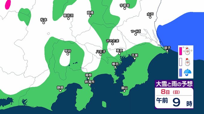 【雪の予想】東京・栃木・群馬・埼玉・茨城・千葉・神奈川・長野・山梨の4日(水)~9日(月)の雪雨シミュレーション【気象庁/2月4日午前発表 関東甲信】 RSK山陽放送 2026年2月4日(水) 09:12 国内 8日(日) 4~9日の雪雨シミュレーション