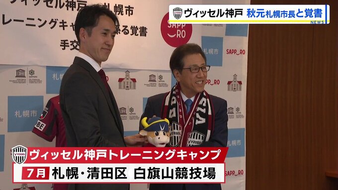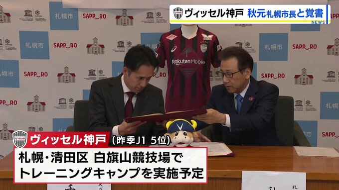 今年の夏、札幌でトレーニングキャンプを行うサッカーJ1のヴィッセル神戸が、札幌市の秋元市長と3日、覚書を交わしました。