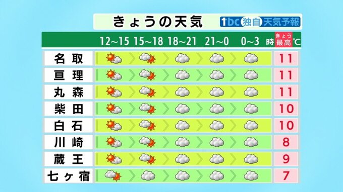 ■柴田:10℃ ■白石:10℃ ■川崎:8℃