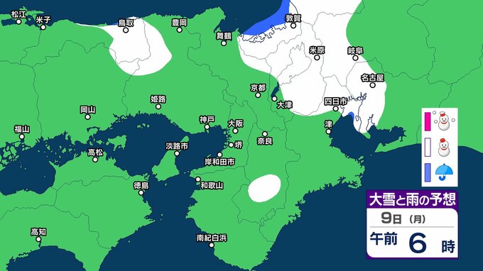 【雪の予想】近畿地方(大阪・京都・兵庫・滋賀・奈良・和歌山)の雪雨シミュレーションと16日間天気予報【気象庁/2月4日/関西】 RSK山陽放送 2026年2月4日(水) 10:25 国内 天気 9日(月) 4日~9日の雪雨シミュレーション