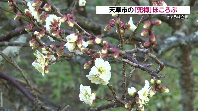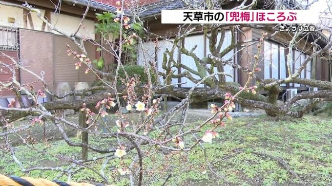 熊本県天草市にある延慶寺では、県の天然記念物にも指定されている梅が咲き始めました。