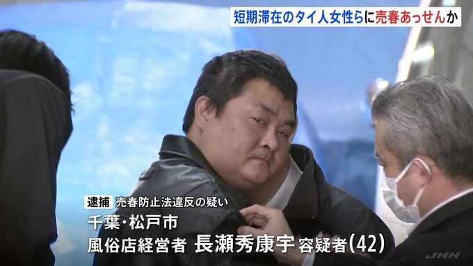 短期滞在で来日したタイ国籍の女性らに売春をあっせんしたとして風俗店従業員の中国籍の男女が逮捕された事件で、店の経営者の男が警視庁に新たに逮捕されました。千葉県松戸市の風俗店経営者・長瀬秀康宇容疑者(4…
