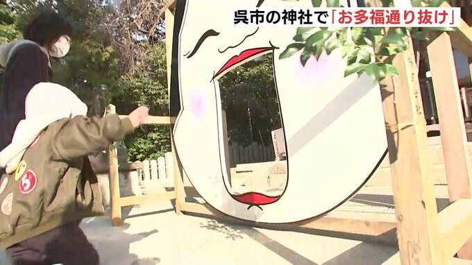 広島県呉市の神社で、今年も恒例の「お多福通り抜け」が行われています。