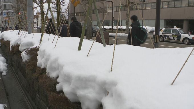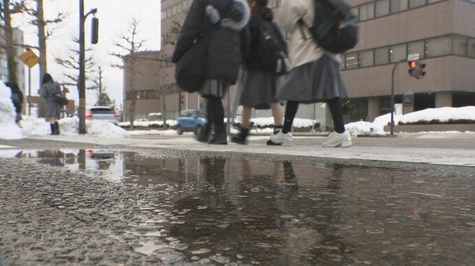 記者リポート「道路には雪がありませんが、屋根にはたくさんの雪が残っています。気温の上昇で雪が落ちてくる危険性も高まっています」