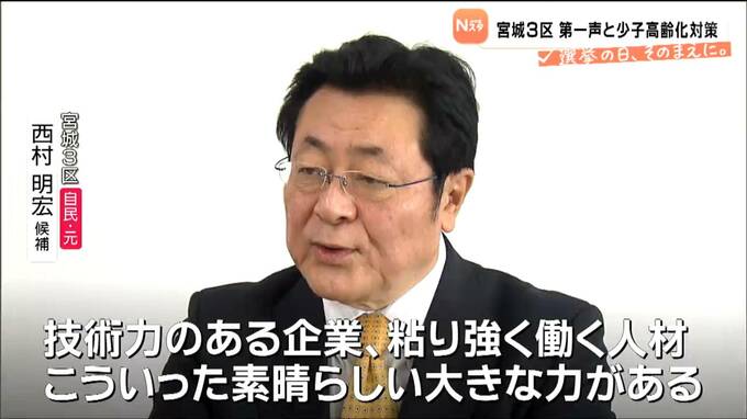 自民党の元職・西村明宏さんは、経済を動かして産業を育てることで地元で働ける場所をつくることが重要だと訴えています。