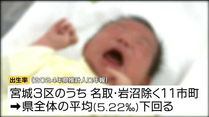 また、出生率は、名取市と岩沼市を除く11の市町で県全体の平均を下回っています。