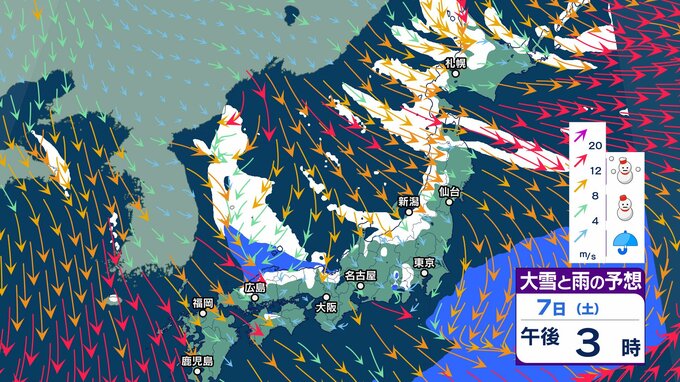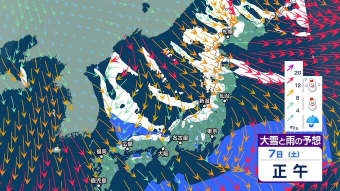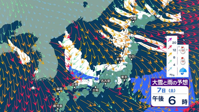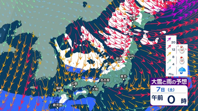 【大雪情報】8日(日)寒気ピークか 日本海側は “警報級大雪” のおそれ 7日、8日は北日本で荒天、西日本でも積雪の可能性 週明け9日まで冬型続く見込み【雪と雨と風のシミュレーション】 チューリップテレビ 2026年2月4日(水) 12:50 国内 天気 7日(土)雨と雪のシミュレーション