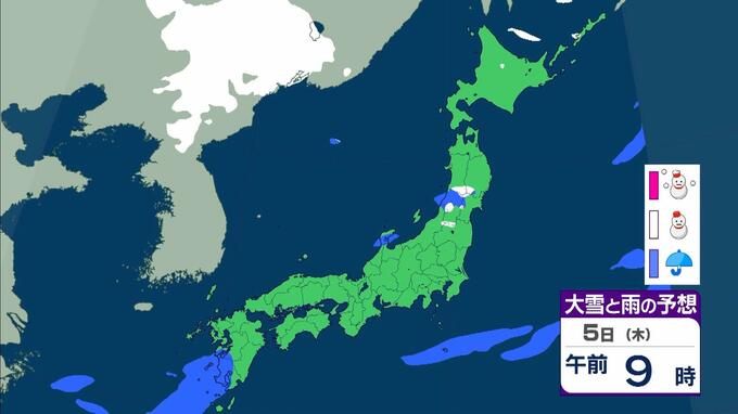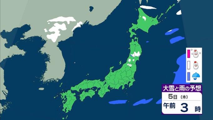 【雪情報】近畿地方は衆議院選挙・投開票日の8日(日)に大雪のおそれ 兵庫北部・京都で“警報級”の可能性も 寒気の影響で週末は再び厳しい寒さに…気温の乱高下に注意【雪と雨の最新シミュレーション】 毎日放送 2026年2月4日(水) 13:10 国内 天気 ▼2月5日(木)の雪と雨最新シミュレーション