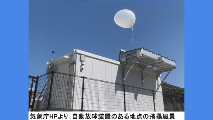 「ラジオゾンデは上空の気圧、気温、湿度、風向、風速等の気象要素を観測する気象観測器です。気象庁以外で高層気象観測を実施している機関は、防衛省、大学機関、民間気象会社があります。高層気象観測は世界中でも行われており、まれに韓国方面から飛来することがあります」