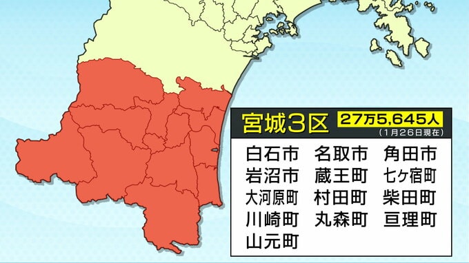 宮城3区は、名取市や岩沼市、白石市など仙台市より南の全域です。