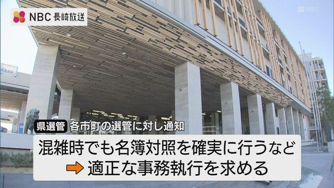 県選管は各市町に対し、混雑時であっても名簿対照を焦らず、確実に行うとともに、現場任せにせず組織としてミスを防ぐ体制を整え、適正な事務執行に努めるよう求めています。