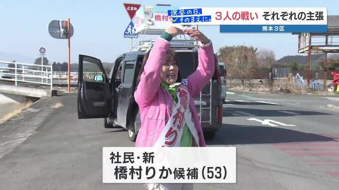 阿蘇地域や合志市、菊陽町、甲佐町などが選挙区の熊本3区には、前職と新人、合わせて3人が立候補しています。