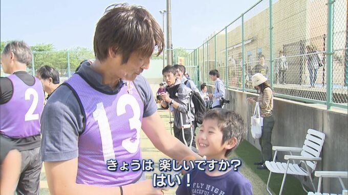 さらに、避難生活でストレスを抱える子ども達を集めて、ボールを蹴りました。