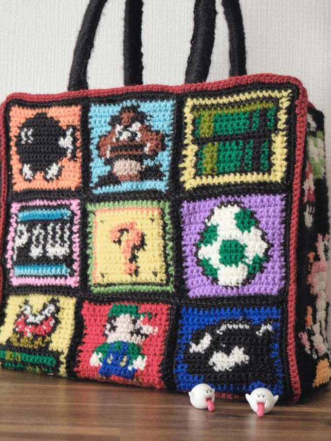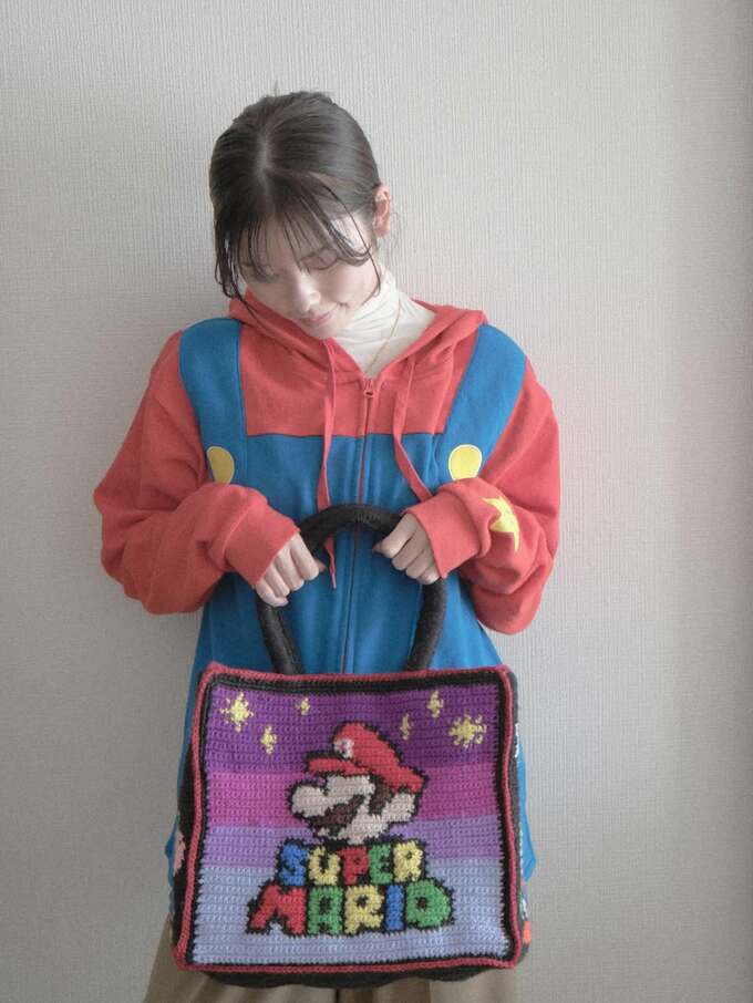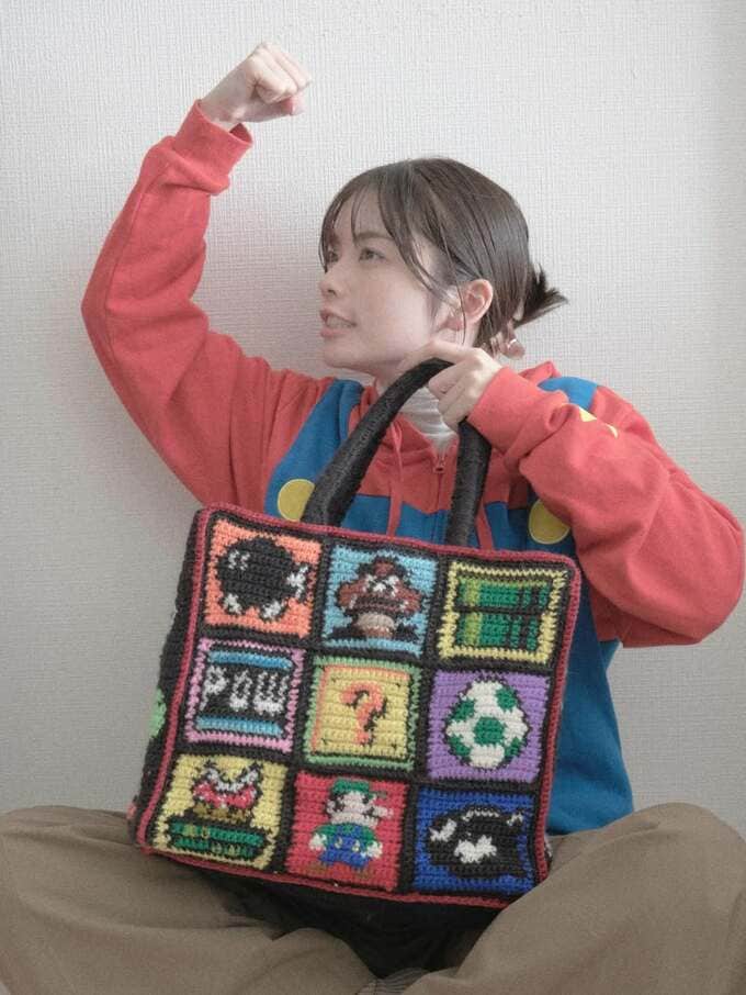 俳優の小芝風花さんが自身のインスタグラムで、大人気ゲームシリーズ「スーパーマリオブラザーズ」のキャラクターが編み込まれた、ドット編みによる手製のバッグを紹介しました。