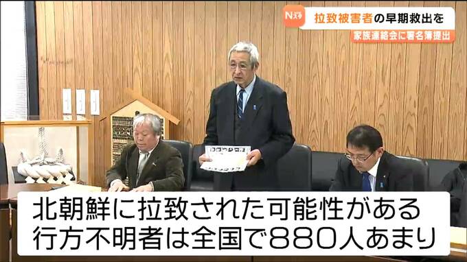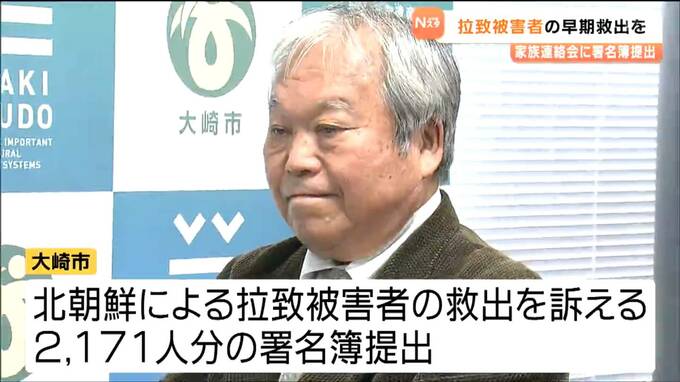 宮城県大崎市は、北朝鮮による拉致被害者の早期救出を求め4日、市民ら2000人あまりの署名簿を家族連絡会に提出しました。