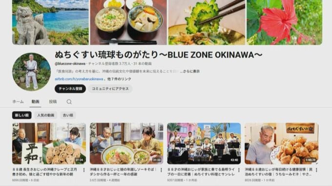 町田さんの何気ない日常に密着したYouTubeチャンネルは、「ぬちぐすい琉球ものがたり~BlueZoneOkinawa~」