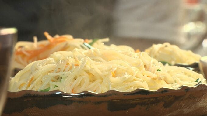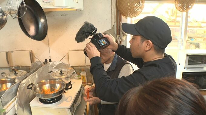 この日は、娘のめぐみさんとともに沖縄の家庭料理を作る様子を撮影していました。メニューはソーメンチャンプルーとアーサ汁。手際よくこなし、あっという間に完成しました。