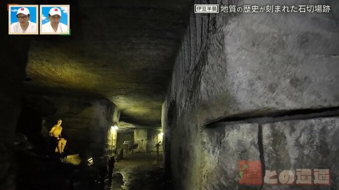 「伊豆半島ができる前の海底火山の噴出で生まれた石を切り出して運んでいた」と道マニア。江戸時代から昭和にかけて、石切場「室岩洞」では軽くて加工しやすい「伊豆石(いずいし)」を採石。江戸城の石垣など、資材として重宝されていました。