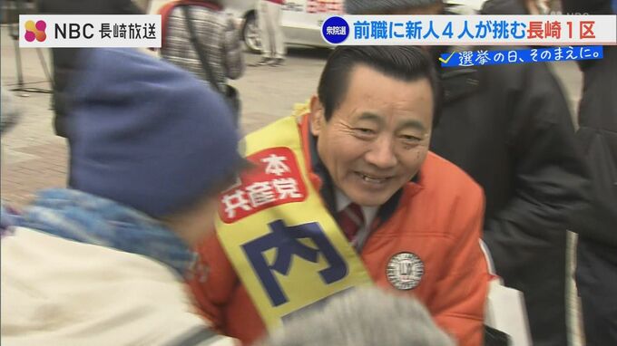 公示2日後には党幹部が応援に駆け付け、被爆地・長崎から平和を発信できる議員を、と呼びかけました。