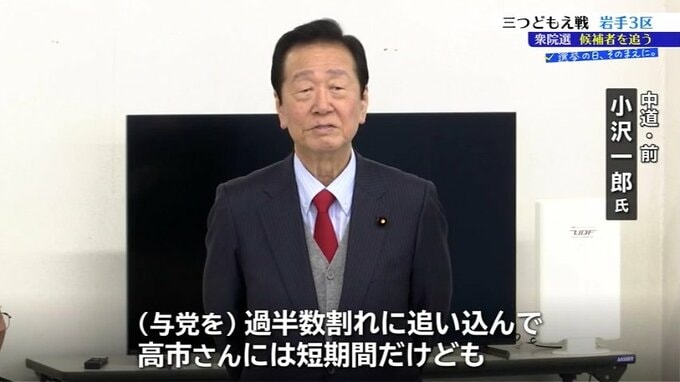 1月27日の公示日、前職の小沢一郎氏は中道改革連合に入党した仲間の応援のため、県外で選挙戦をスタートさせました。