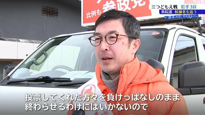 参政党の新人、及川泰輔氏は2025年夏の参院選、岩手選挙区で選挙に初挑戦し、およそ半年後、今度は衆院選の候補者として総選挙を戦っています。