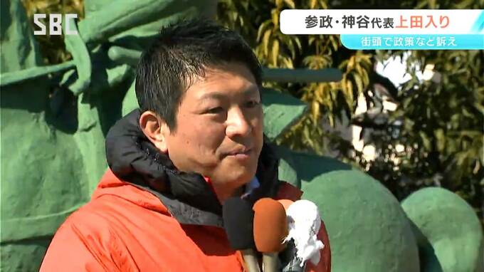 8日に投開票される衆院選に向けて、参政党の神谷宗幣代表が上田市に入り、公約や政策などを訴えました。